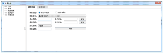 2、 点击“扩展交易功能”出现“转账”子菜单。
