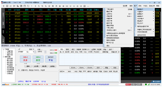 1、登录交易软件,点击“账户”菜单下的“期货账户”,出现子菜单后,选择“账户出入金”。