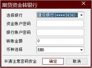 ★ 中行入金时需输入电话银行密码和资金密码,出金时请输入期货资金密码;