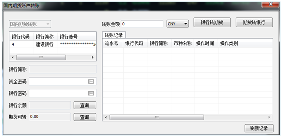 4、入金请点击“银行转期货”,出金请点击“期货转银行”。
