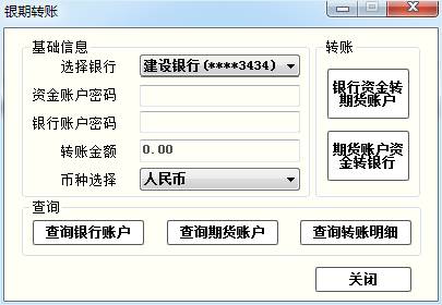 2、出现如下界面,依次输入密码、转账金额,如入金请点击“银行转期货”按钮,出金请点击“期货转银行”按钮。